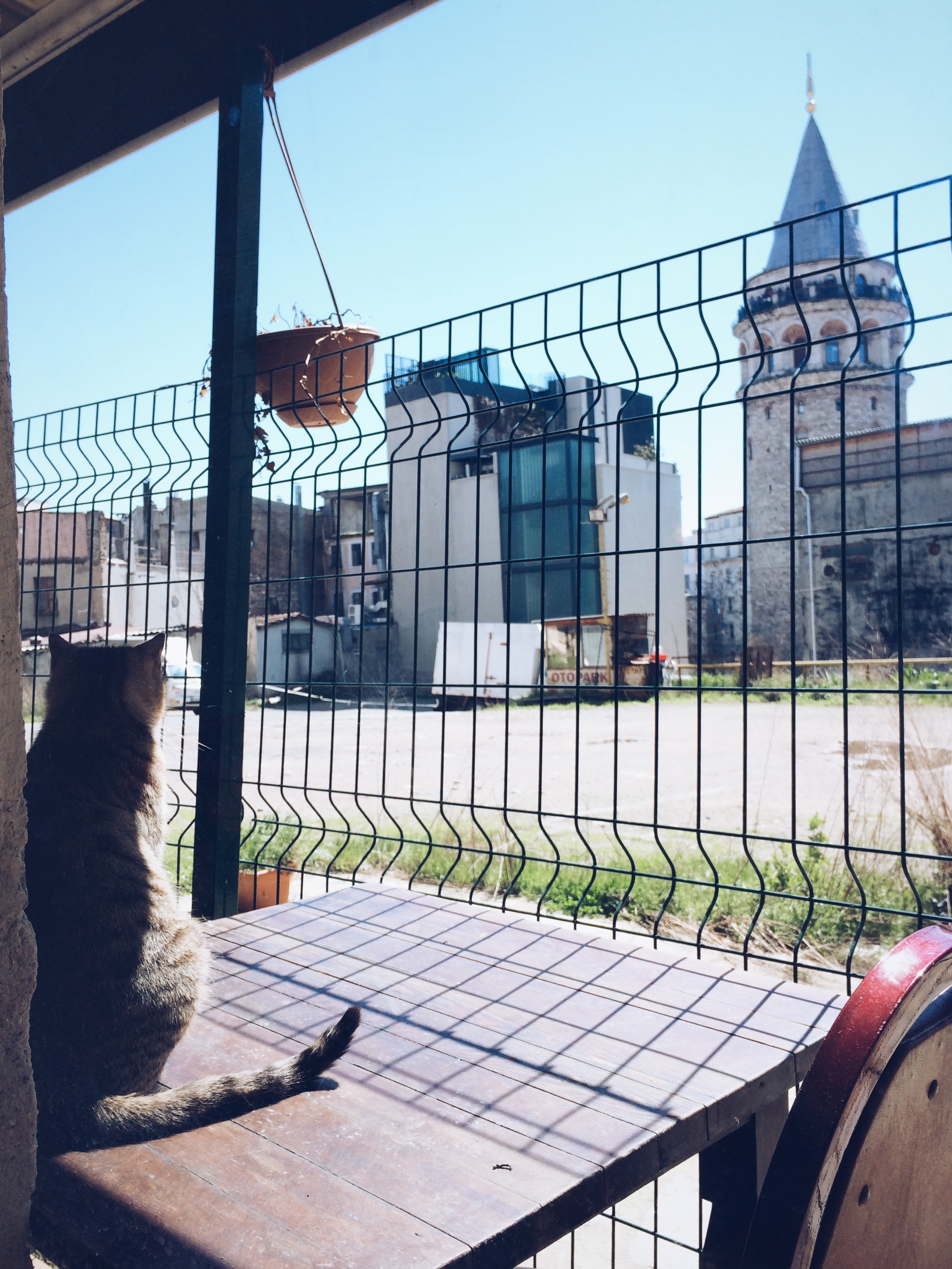 I rented a room near Galata Tower when I first visited Istanbul. The lady hosting me suggested that I try the breakfast at the cafe downstairs. Turned out that she worked there. Breakfast was lovely, washed down with a thick Turkish coffee served in a pretty gold patterned glass. With a view of the nearby Galata Tower, it was amusing to see the tiny human figures crowding the top of the former prison.