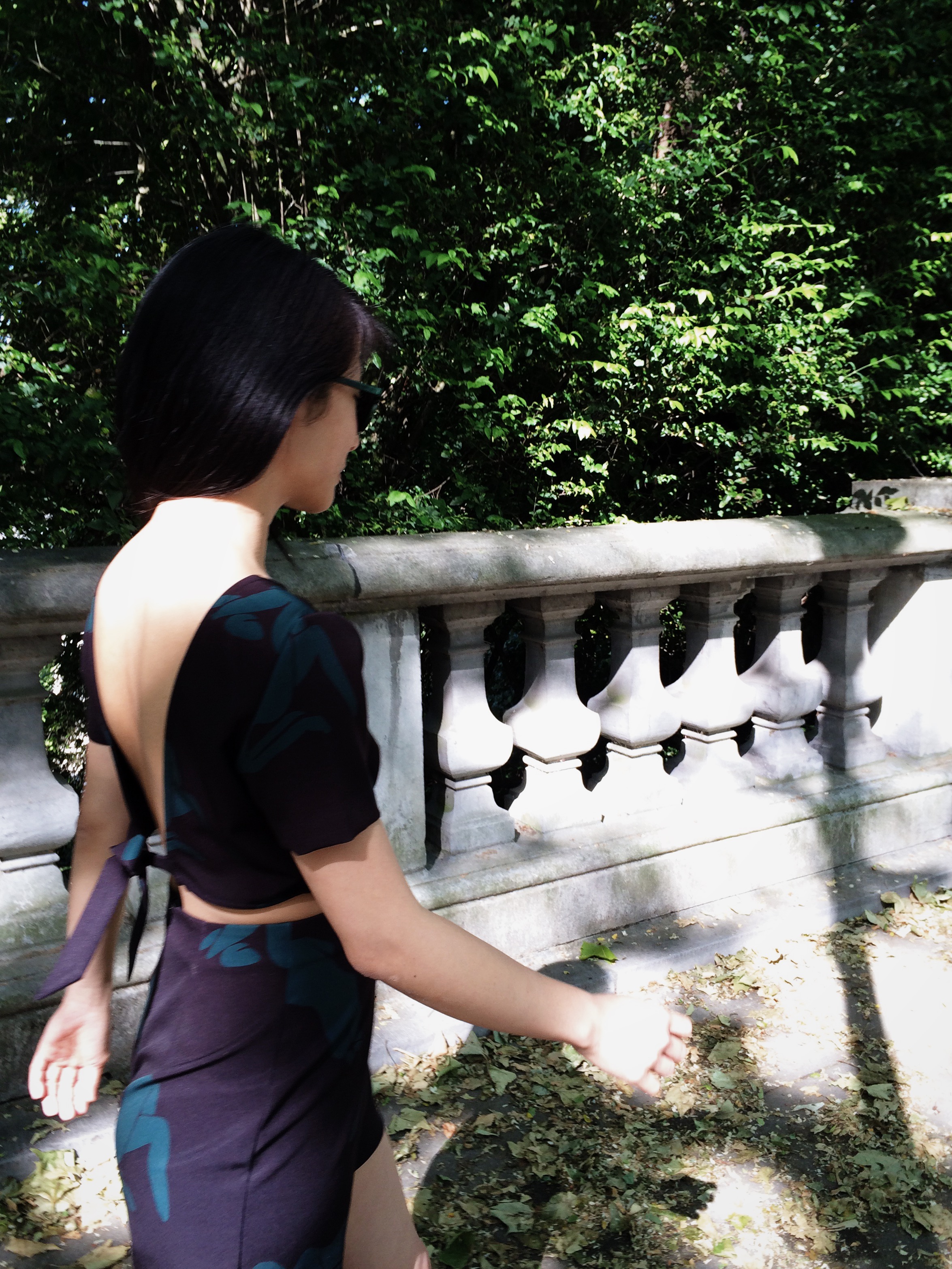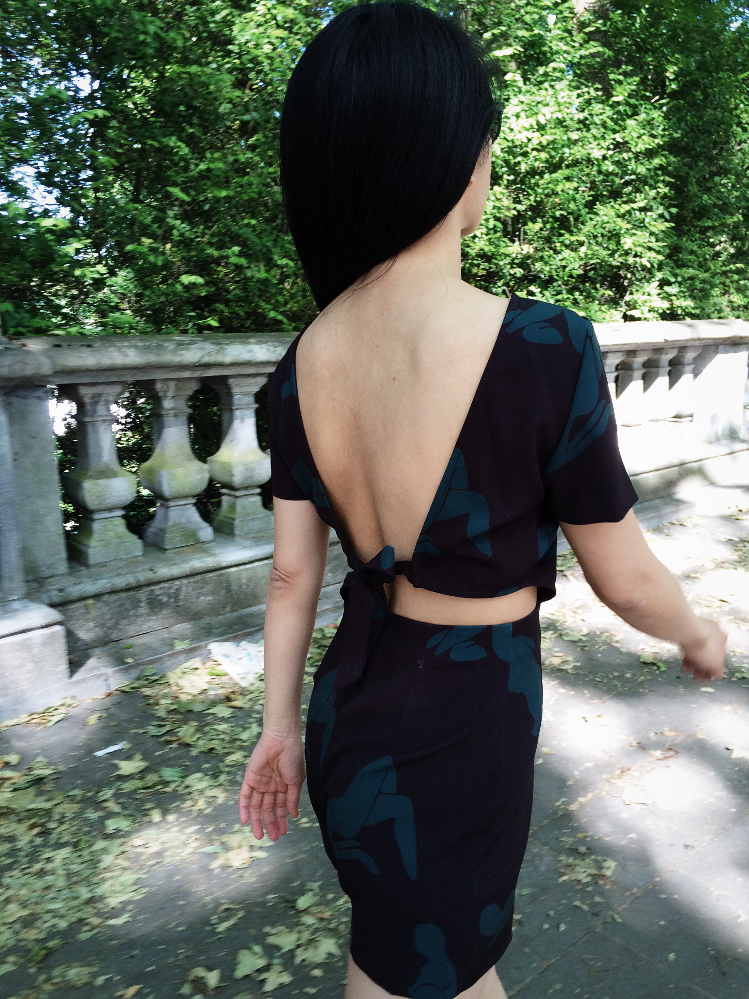 I tried it on and bought it without hesitation. The playsuit is well made and allows for easy movement. I love the silhouette of the outfit, the side slits and the bare back held together with a ribbon.