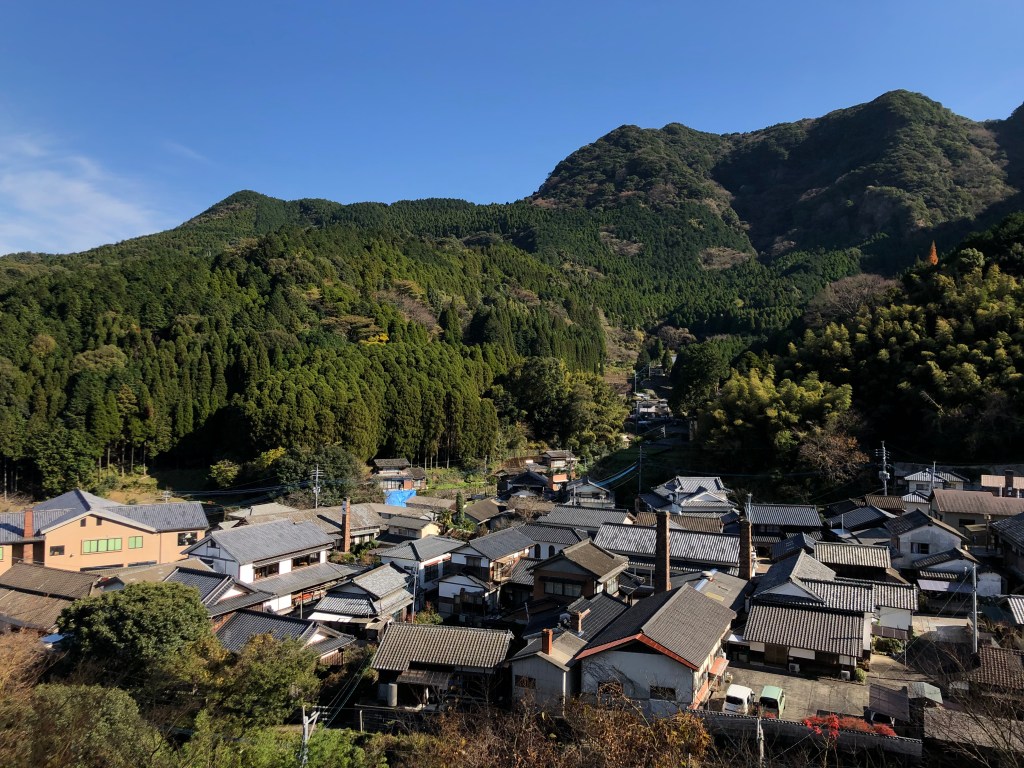 My favourite spot involves an uphill climb to the Nabeshima Hanyo Park where you will get a sweeping view of the village with its protruding chimneys nestled amidst green mountains.