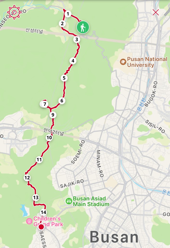 We came up with a route that neither required us to have to wake early and spend all day hiking nor would it be too easy a walk. We took a bus near Oncheonjang metro station to the East Gate of Mount Geumjeong Fortress (Geumjeong-san-seong dongmun, 금정산성 동문) which lies midway between the two temples. From there, we walked for about five hours, covering more than 14 kilometres with a fair amount of gradual climbing.