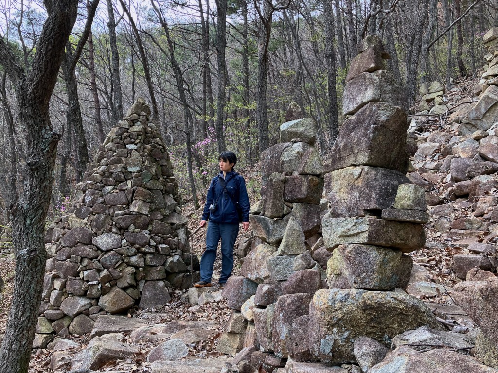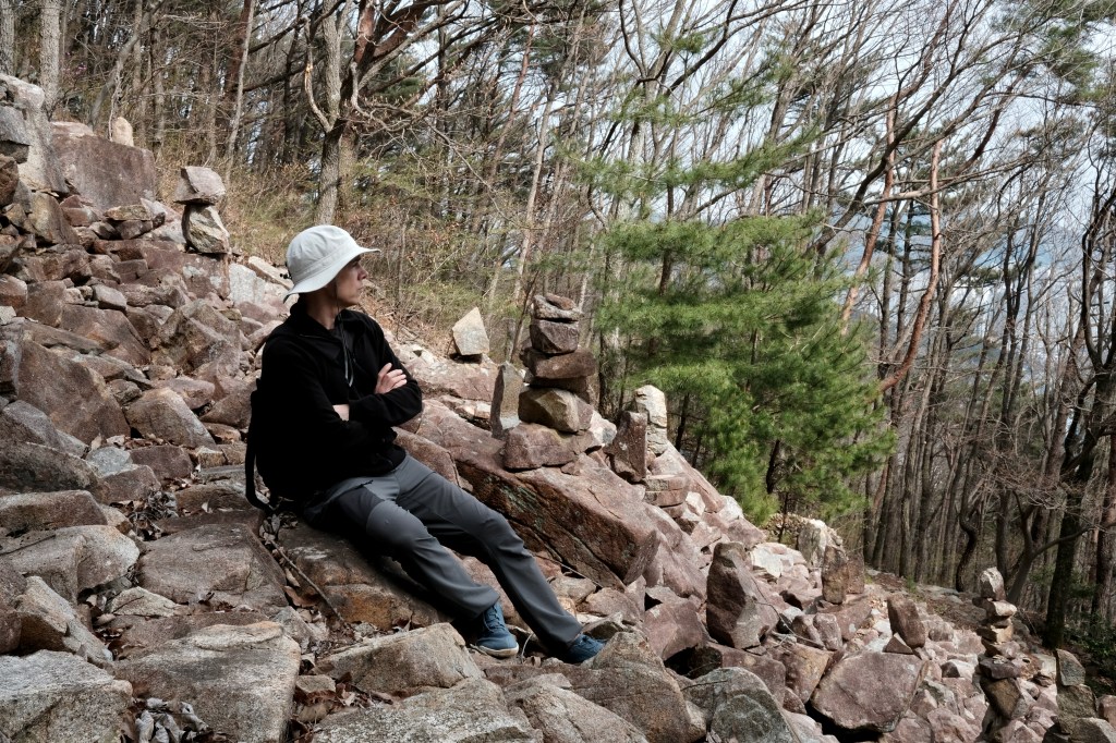 We continued on our way, choosing an elevated dirt trail over a paved road. Instead of continuing to the peak of Baekyang-san, we wandered off to another cool panoramic viewing spot.