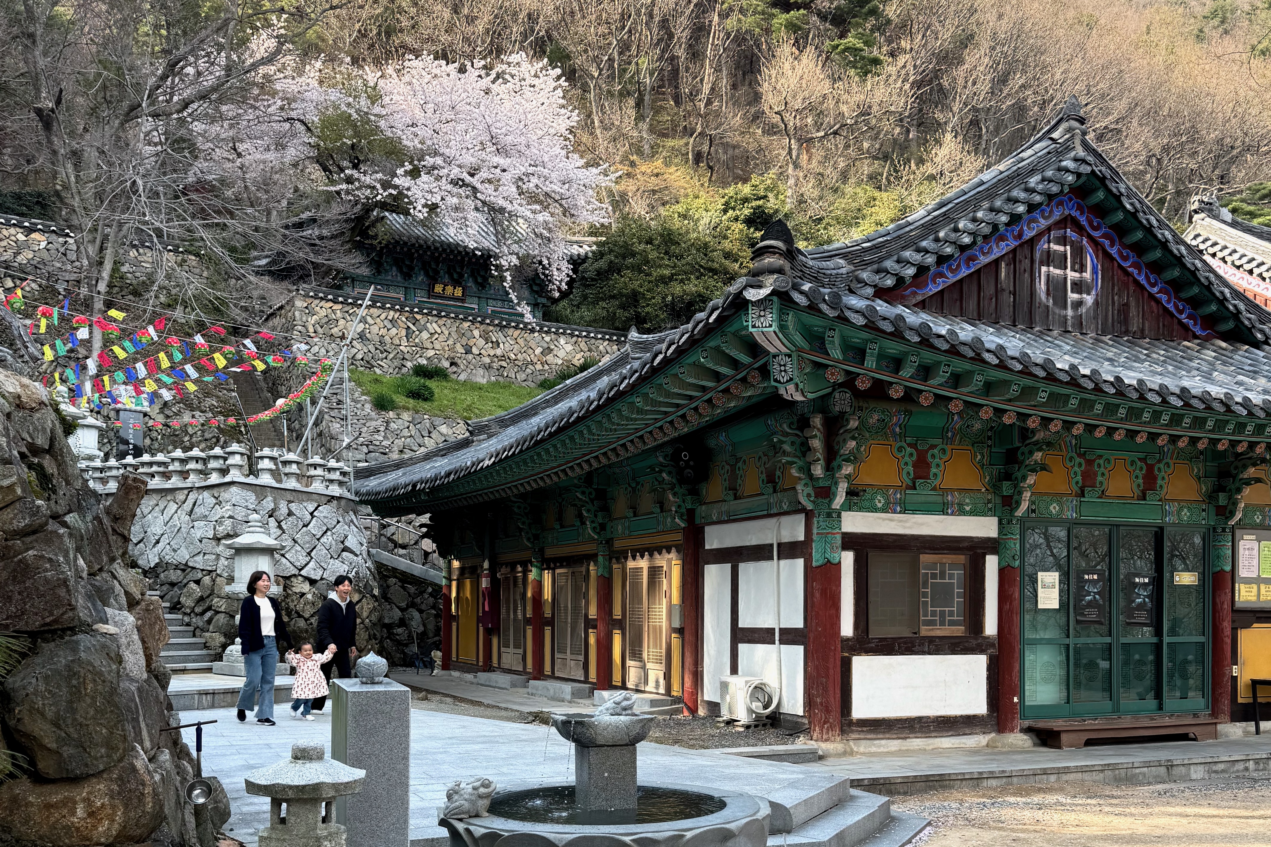 We headed to Mount Baekyang (Baekyang-san, 백양산) as it’s accessible by subway from our apartment in Seomyeon and there are multiple trails and notable temples on it. After arriving at Gunam station (구남역), we got a snack at Paris Baguette – which, despite its name, is actually a South Korean bakery chain. From there, we walked to Gwaneum Temple (Gwaneum-sa, 관음사).