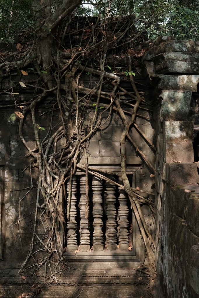 Tree roots and vines have grown all over the ruins, amidst collapsed piles of sandstone. The morning light on the intricate carvings cast a magical mystique on the place. The smell and smoke of burning leaves only added to its indelible charm. In the rainy season, the stones would be covered in green moss – creating an otheworldly atmosphere.